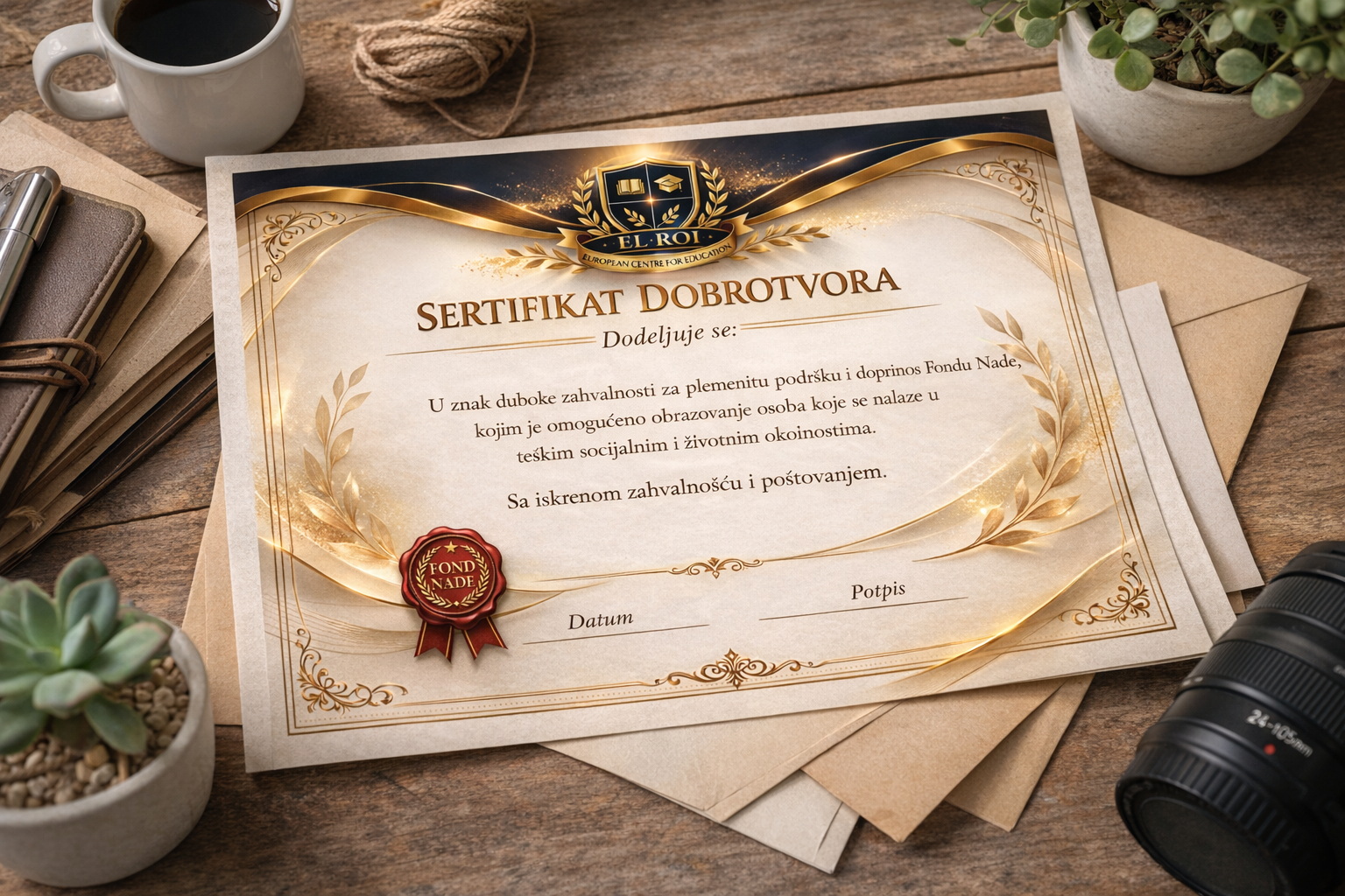 Svaki polaznik koji uplati upisninu postaje deo Fonda i dobija Sertifikat dobrotvora - "Nosilac nade", kao simbol podrske i solidarnosti.